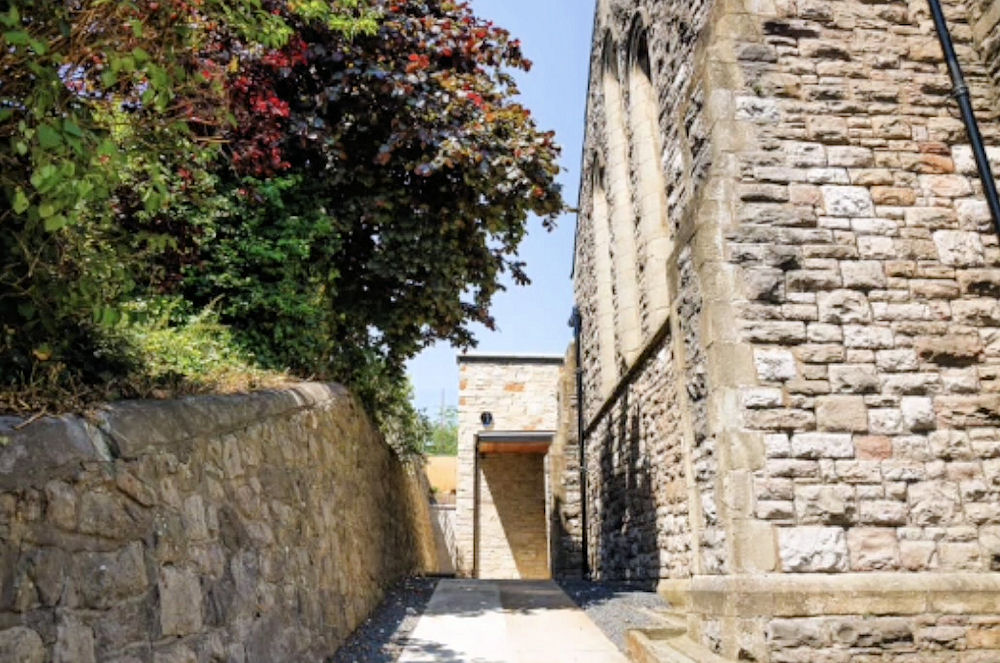 The first stage of the project was the demolishing of the old extension and the groundworks to the rear, digging out footings for the new extension and a retaining wall. We then moved forward to clearing out the inside of the Church, including removing the parquet flooring and digging down below floor level inside. We also carefully removed the stone-arched window for access into the new extension. Ducts and underfloor pipes were then installed in preparation for the underfloor heating to be installed by our plumbers.